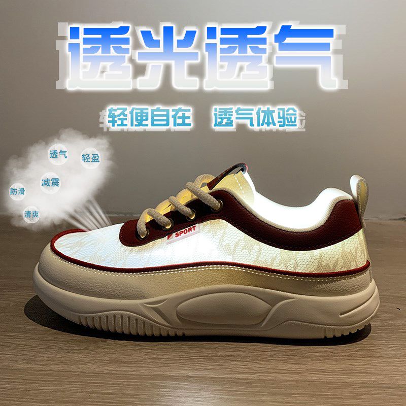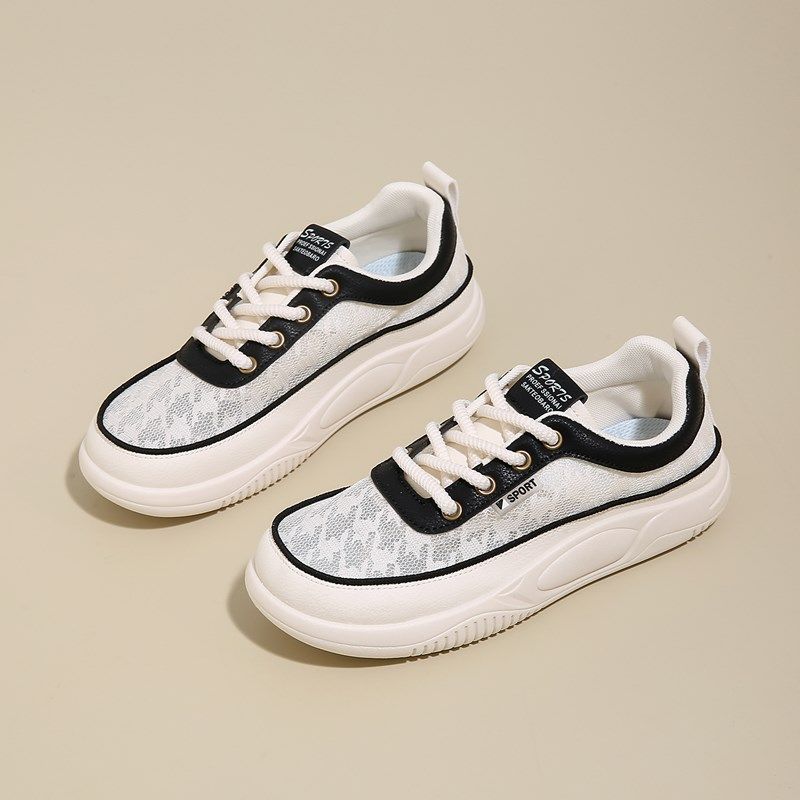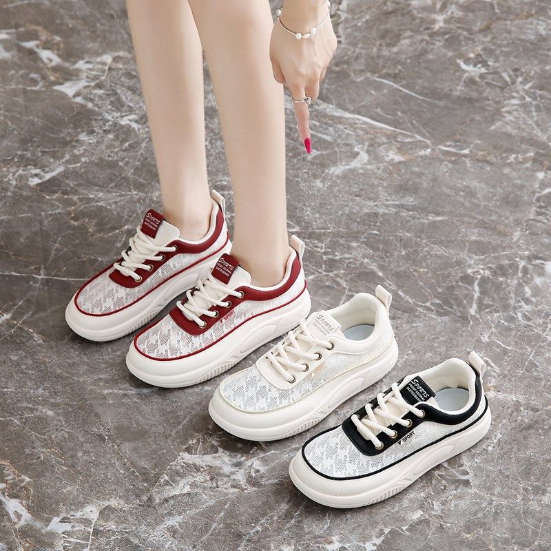 高品质女鞋透气蕾丝网面小白鞋女韩版一脚蹬蕾丝拼接休闲板鞋