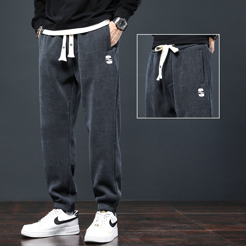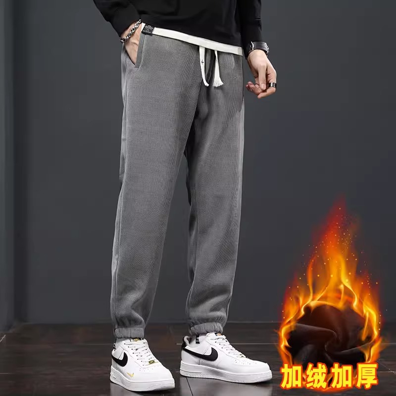 休闲裤男秋冬季宽松大码灯芯绒裤子韩版潮流青少年学生束脚哈伦裤