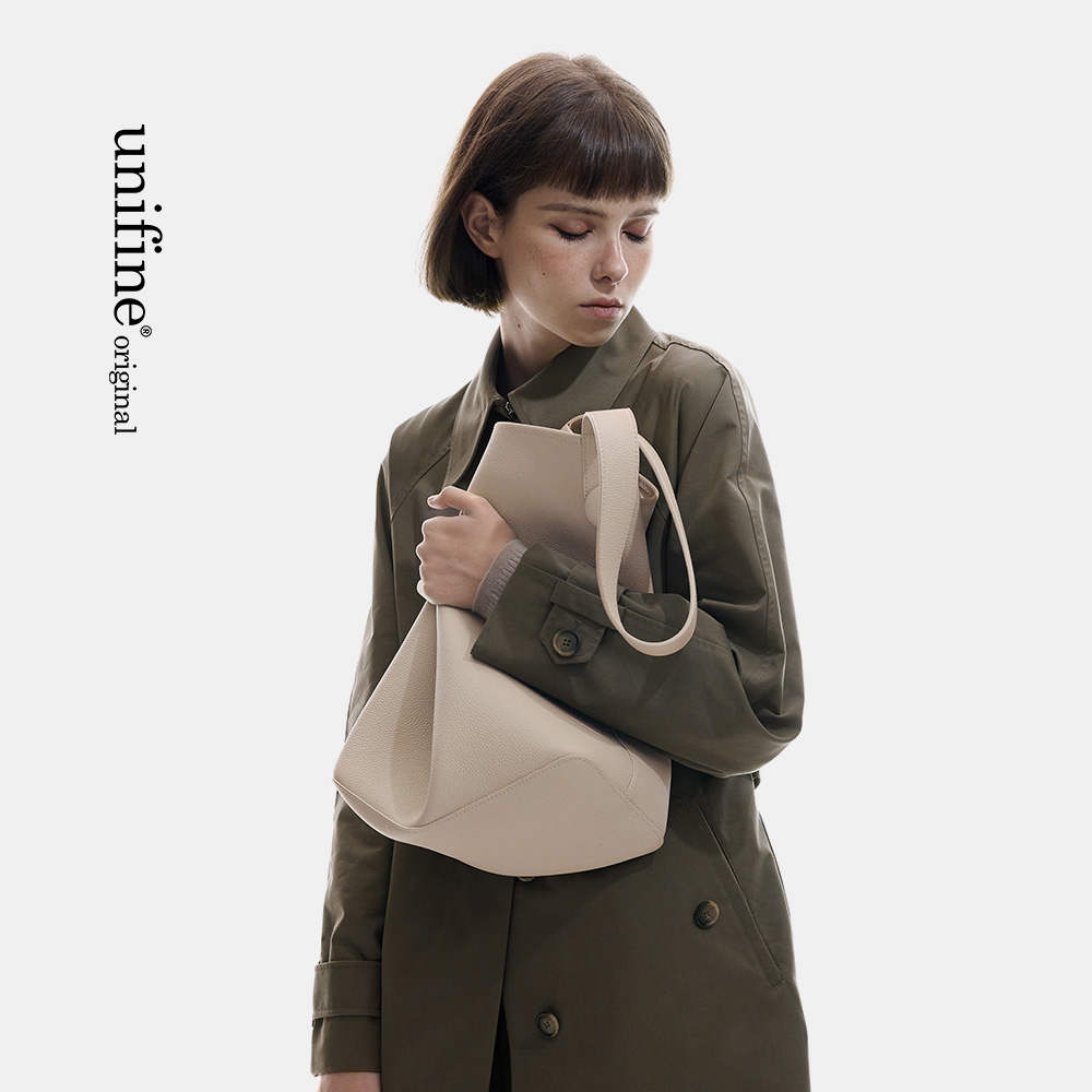 unifine通勤包包电脑大包托特包女大容量女包牛皮极简大水桶包