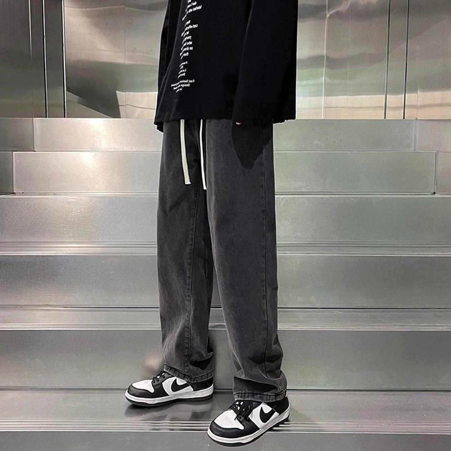 显高显瘦帅气松紧腰牛仔长裤