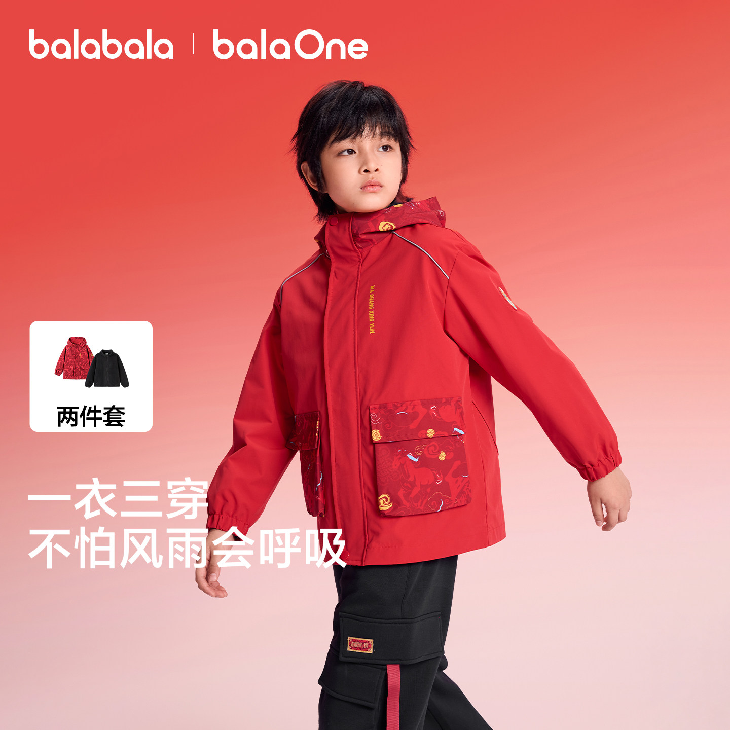巴拉巴拉童装儿童外套男童上衣2025新款拜年服春装防泼水两件套潮