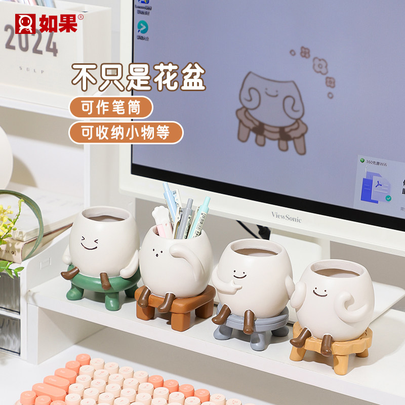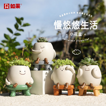 慢悠悠小花盆工位桌面笔筒摆件情绪稳定神器治愈系多肉绿植盆栽