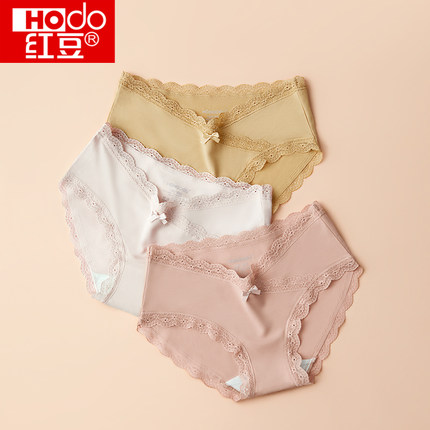 红豆杉莫代尔女士抗菌内裤蕾丝性感中腰短裤透气大码夏薄三角裤头