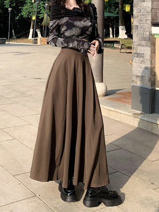 胖mm遮肚藏肉半身裙子大码今年流行爆款半裙高个裙加长棕色百褶裙