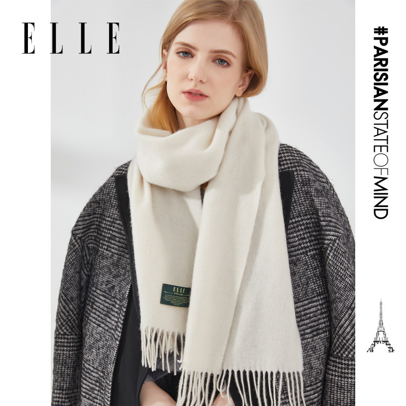 ELLE100%绵羊毛围巾女士秋冬