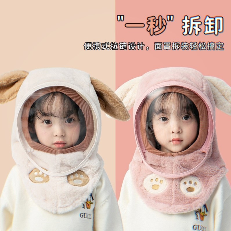 可爱小熊口罩一体帽女冬天骑车保暖儿童护耳防寒帽子冬季毛绒围脖