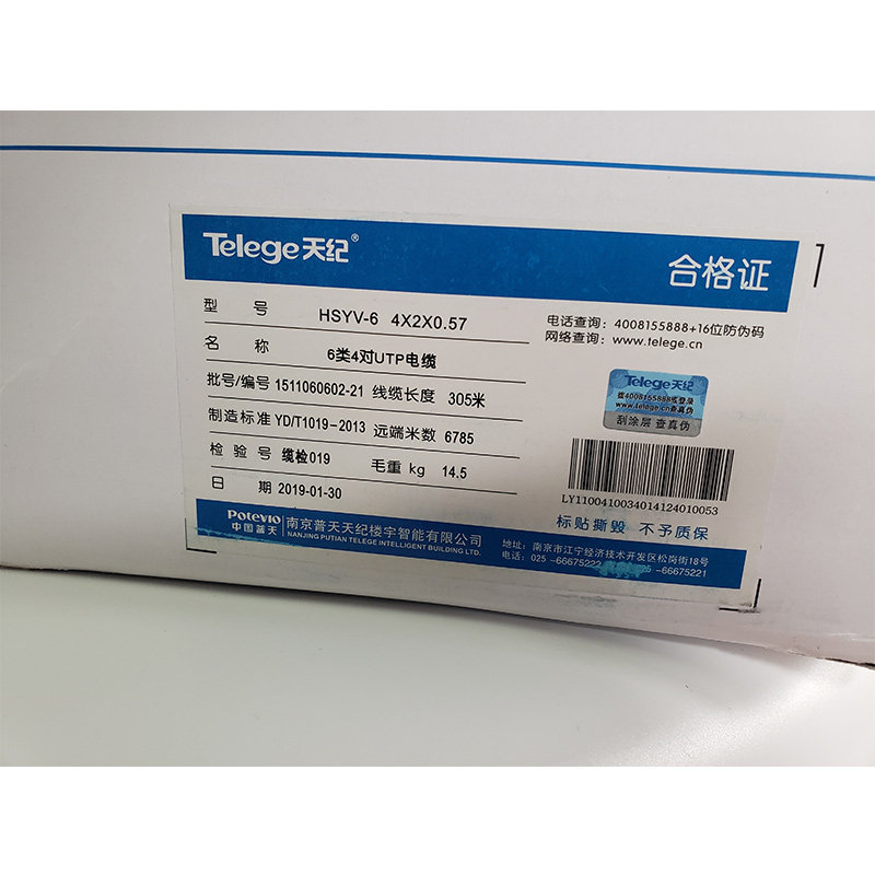 南京普天Telege天纪六类网线普天超五类6类无氧铜057普天千兆网线