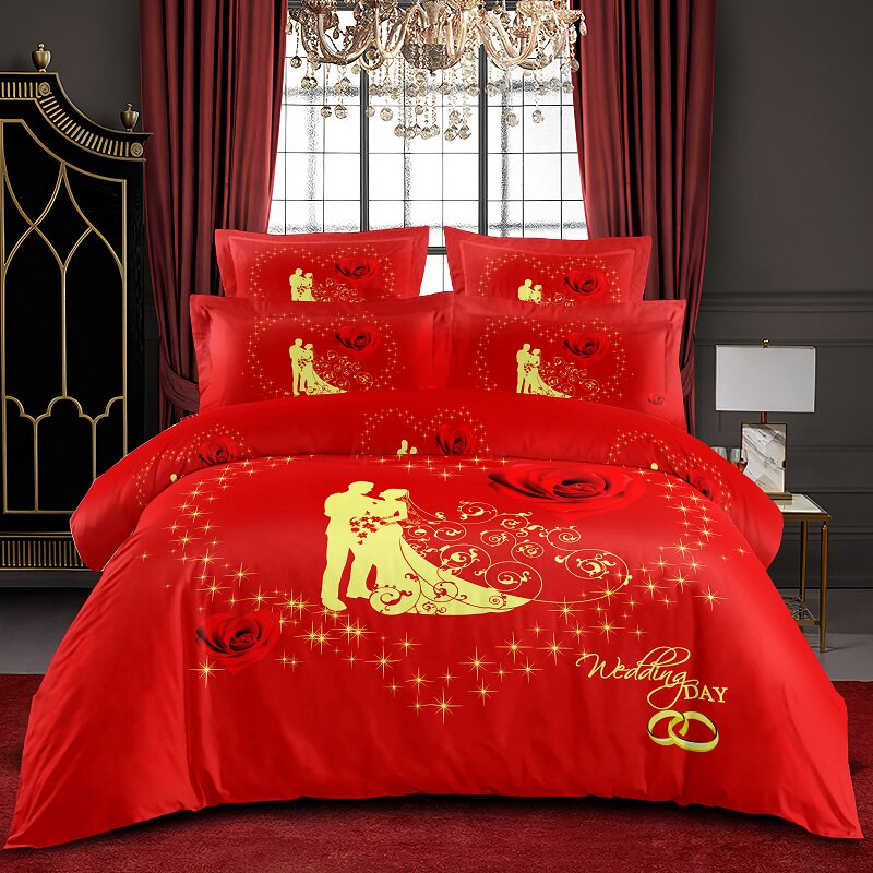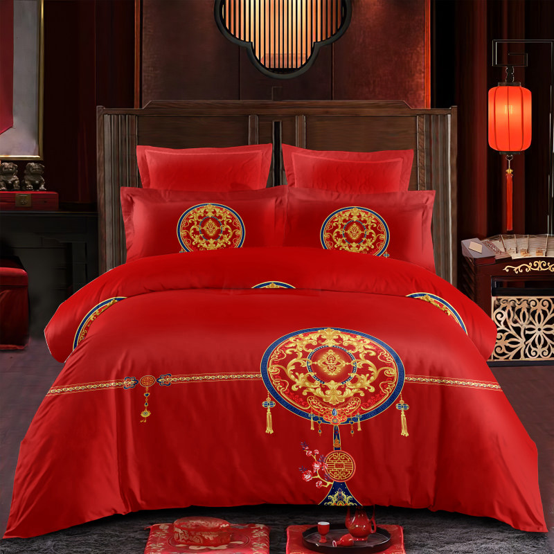 婚庆四件套大红色结婚全棉1.8m2.0m床双人被套床单式喜庆床上用品