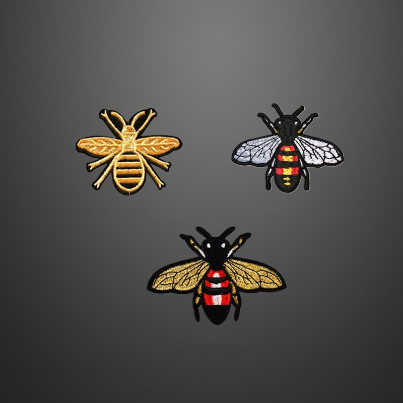 潮牌刺绣布贴金色棕色蜜蜂装饰贴服装辅料牛仔裤衣服破洞补丁标