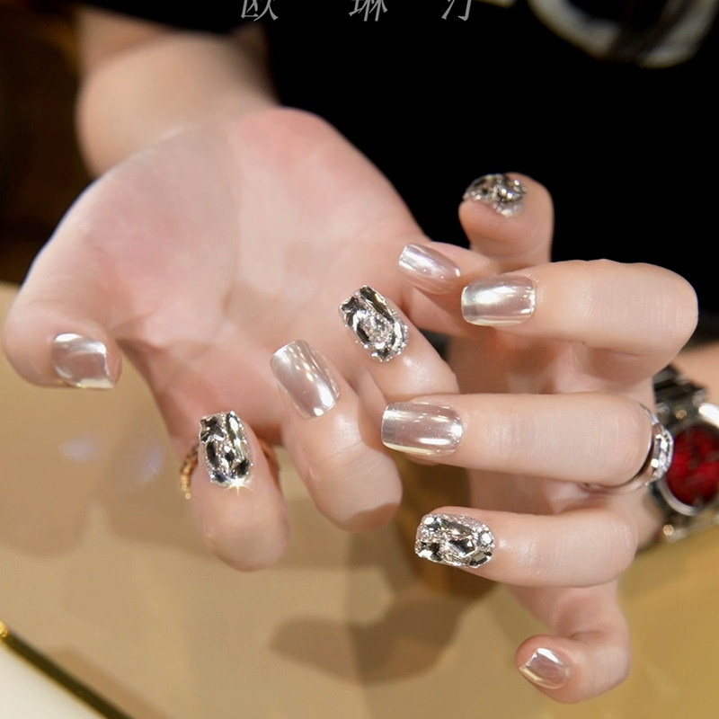 欧琳汀美甲同款材料叮咣乱闪 银白碎钻胶镜魔镜粉中小白钻饰品