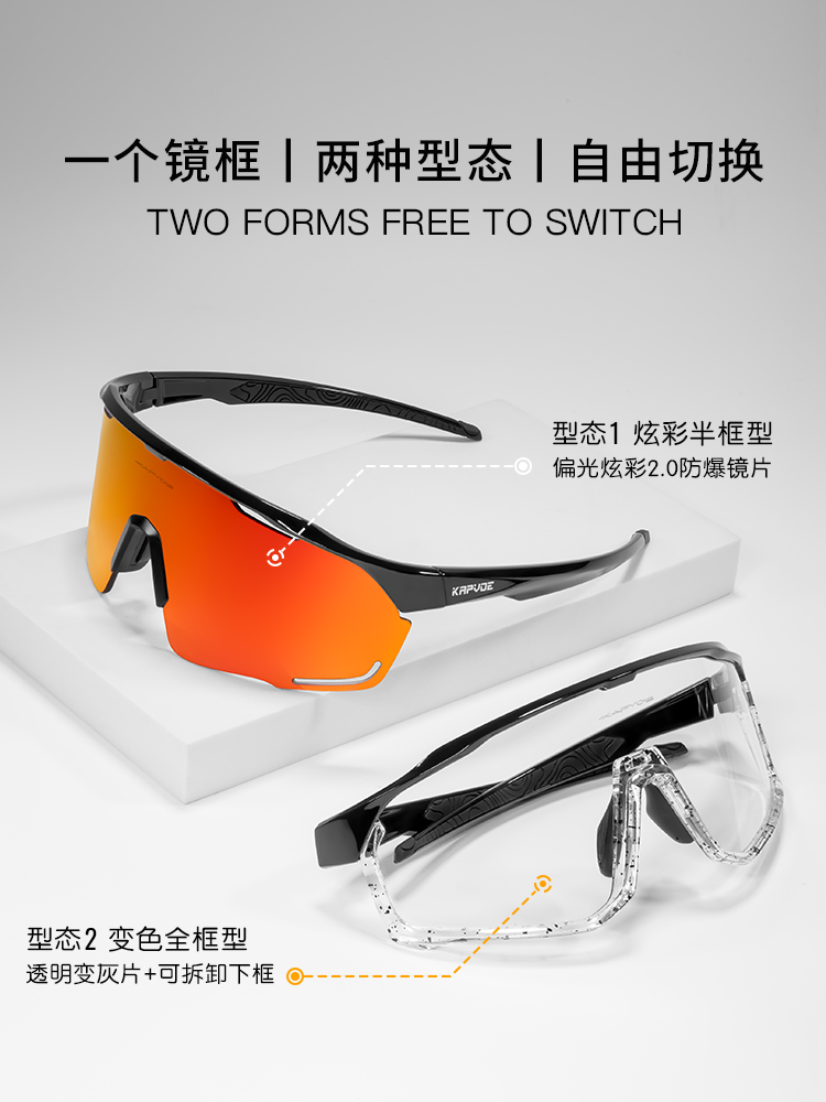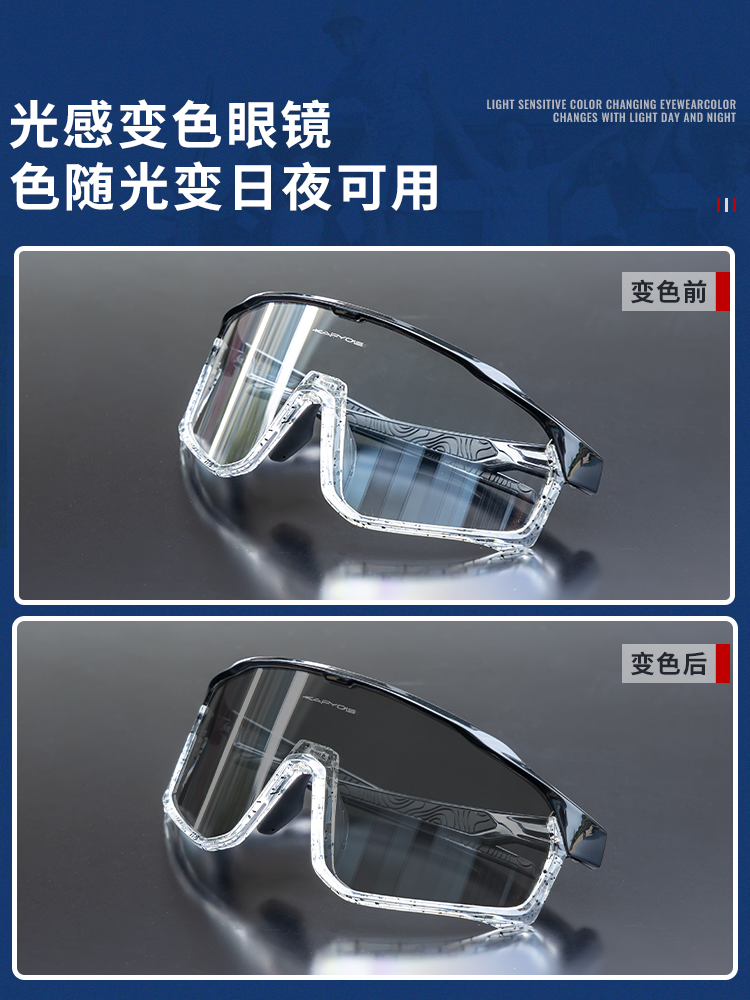 KAPVOE变色骑行眼镜跑步运动公路自行车防风镜近视男偏光太阳镜女
