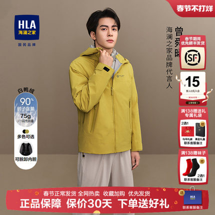 HLA/海澜之家曾舜晞同款可脱卸内胆羽绒服秋冬新款保暖蓬松外套男