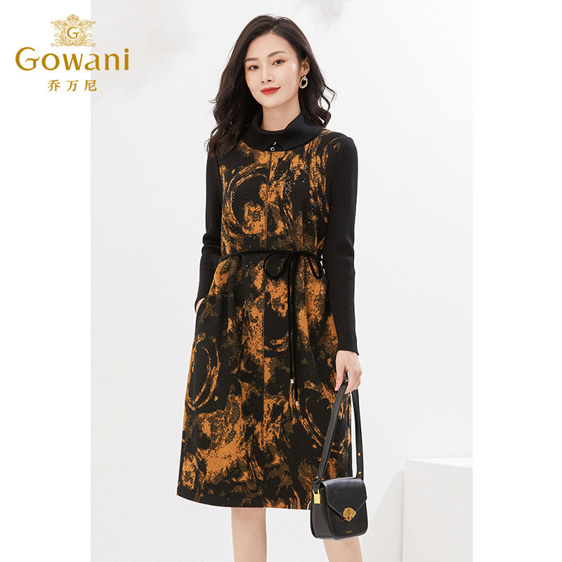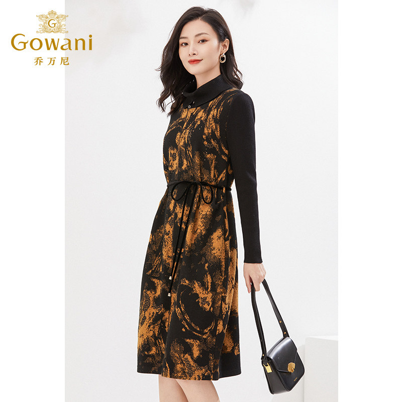 乔万尼2025商场同款新品连衣裙软糯亲肤绵羊毛百搭长裙EI4E526