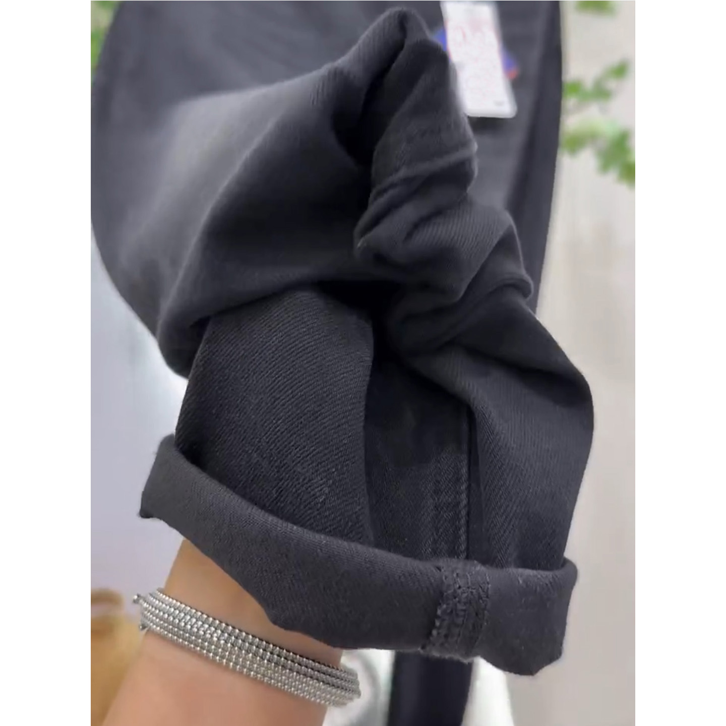 大码高腰弹力加绒九牛仔老爹裤女2025秋冬新款宽松显瘦萝卜哈伦裤