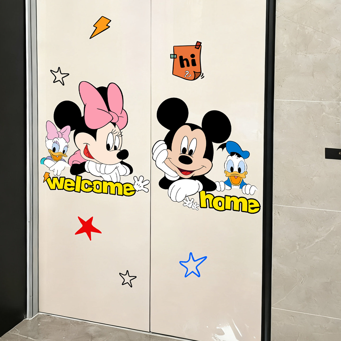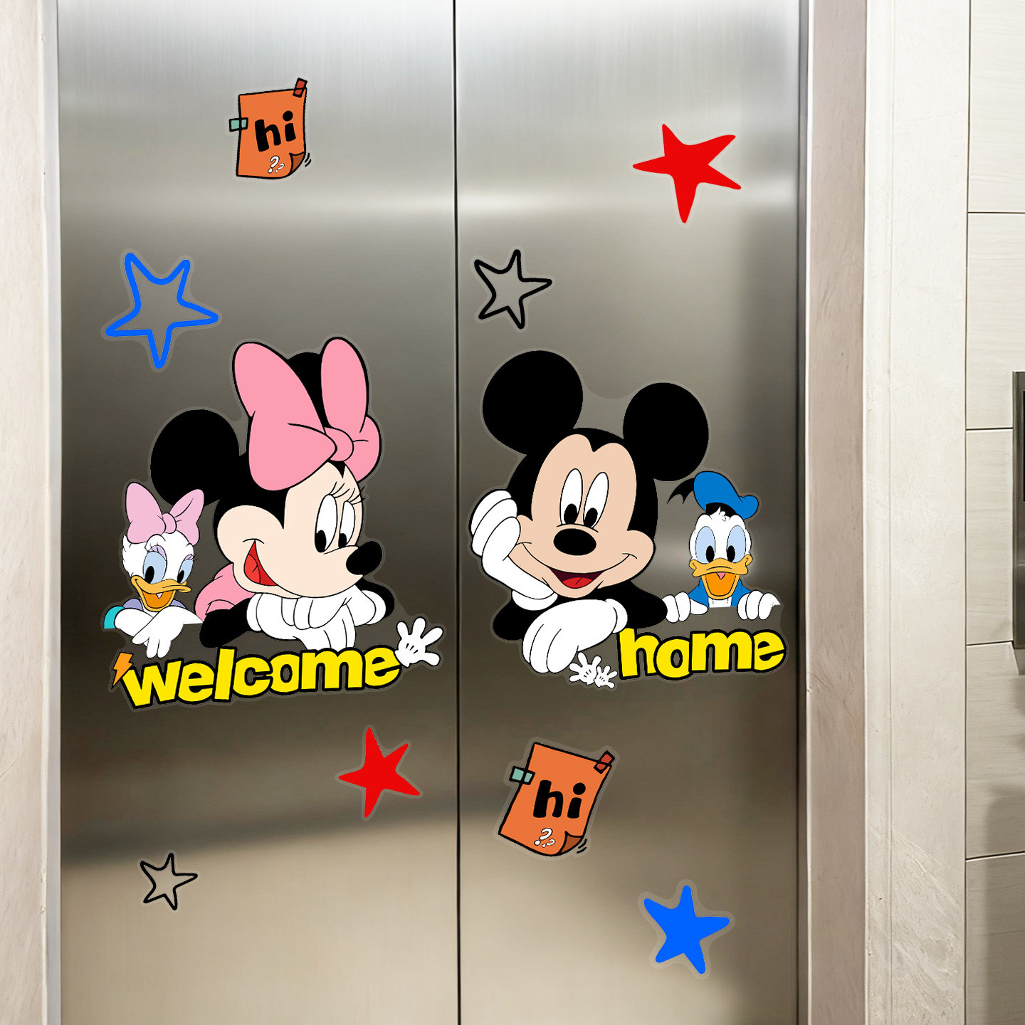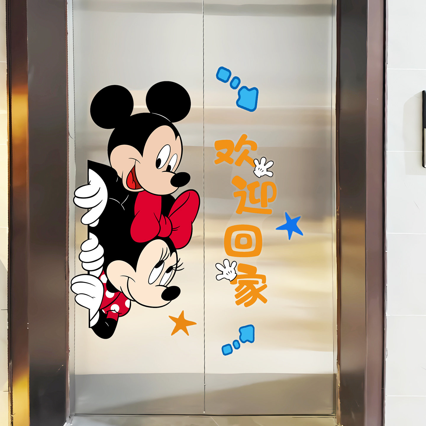 米奇老鼠电梯贴纸米妮欢迎回家入户门装饰胶贴一梯一户高级感贴画