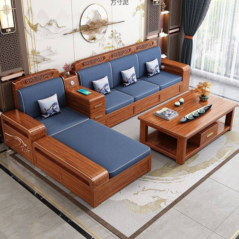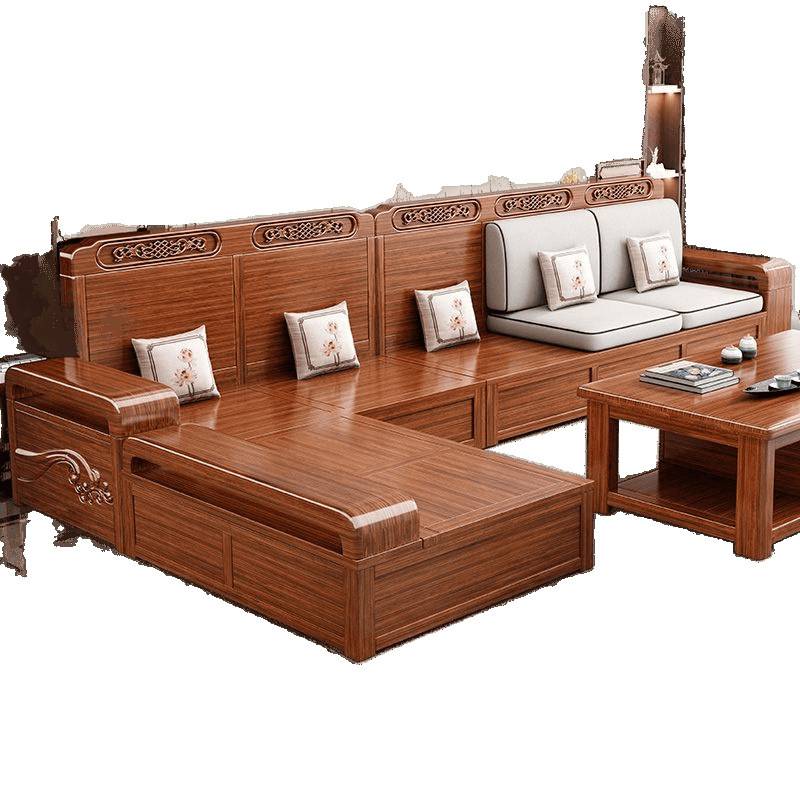 新中式胡桃木储物沙发组合现代简约冬夏两用实木小户型客厅家具厂