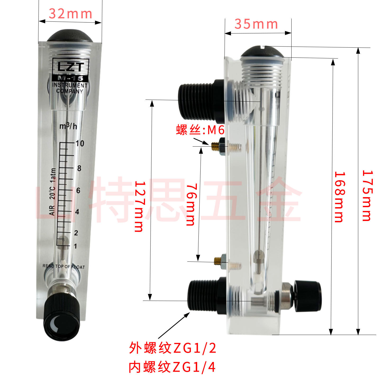 余姚远大LZT-M15T面板式流量计水液体气体转子浮子带调节123 5GPM