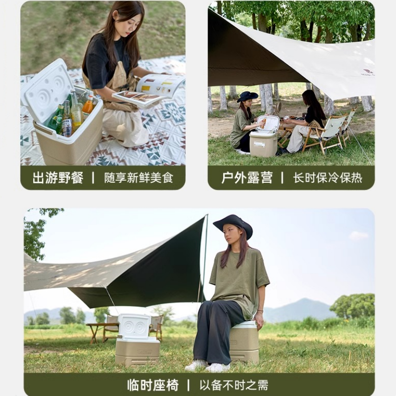 牧高笛户外露营食品冷藏箱冰桶车载冰箱长效保鲜盒冷热两用保温箱
