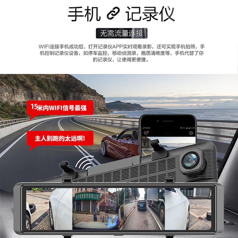12寸四路盲区行车记录仪超高清夜视流媒体后视镜ADAS预警停车监控