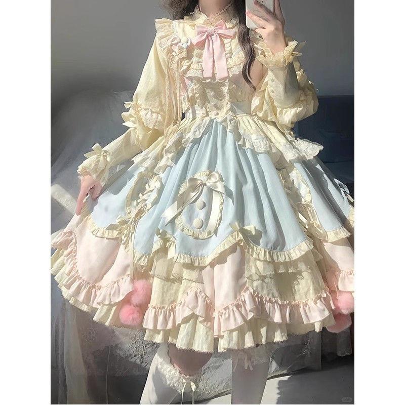 蓝粉可爱甜美lolita长袖短款连衣裙OP蓬蓬穿搭在逃公主风公主裙女