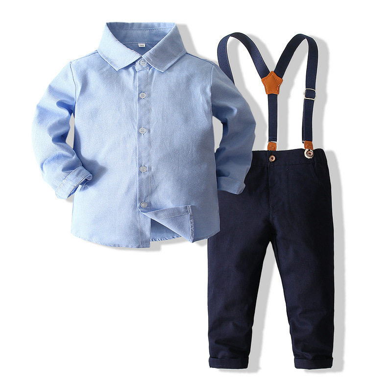 男童秋季英伦风套装婴儿绅士长袖纯棉衬衫背带裤周岁生日礼服童装