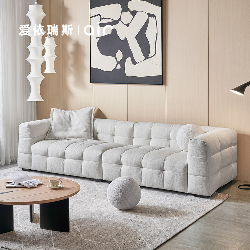 爱依瑞斯棉花糖沙发布艺奶油风客厅羊羔绒法式复古直排三人位37