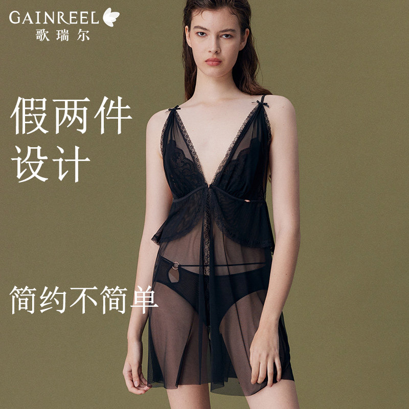 歌瑞尔性感高开衩睡裙深V睡衣女禁欲系透气亲肤蕾丝薄款家居服