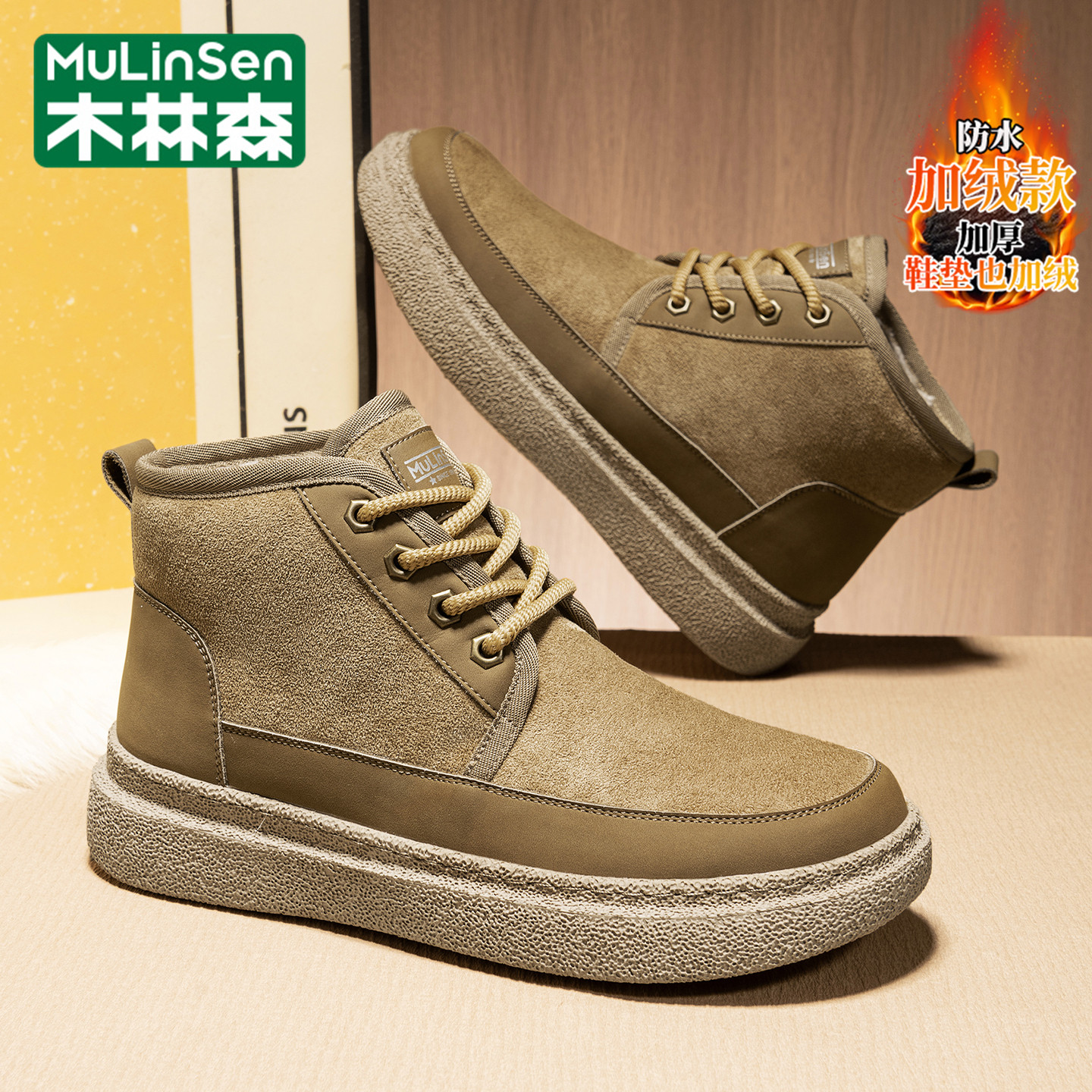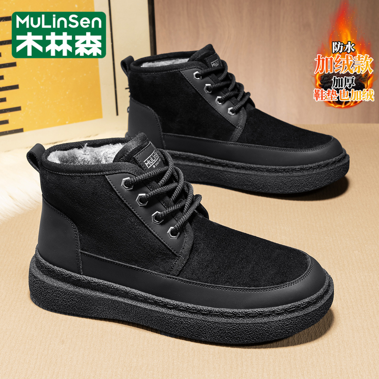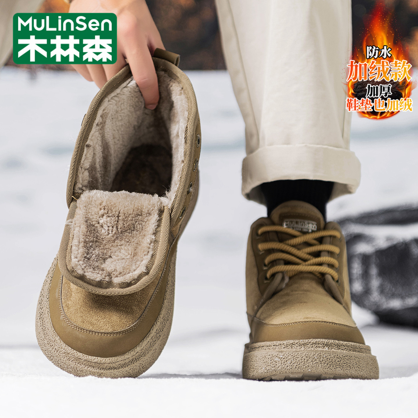 木林森棉鞋男冬季加绒加厚中高帮东北户外雪地靴马丁工装复古板鞋