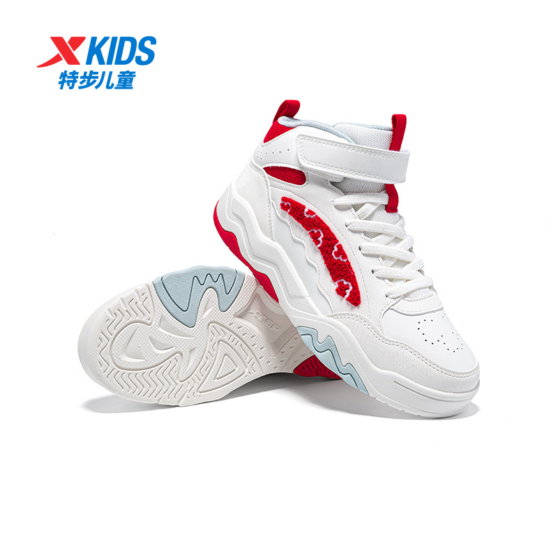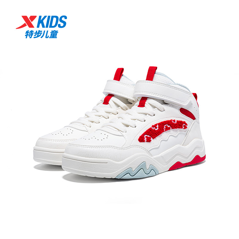 【商场同款】特步童鞋春季新款儿童魔术贴板鞋女童高帮街潮运动鞋