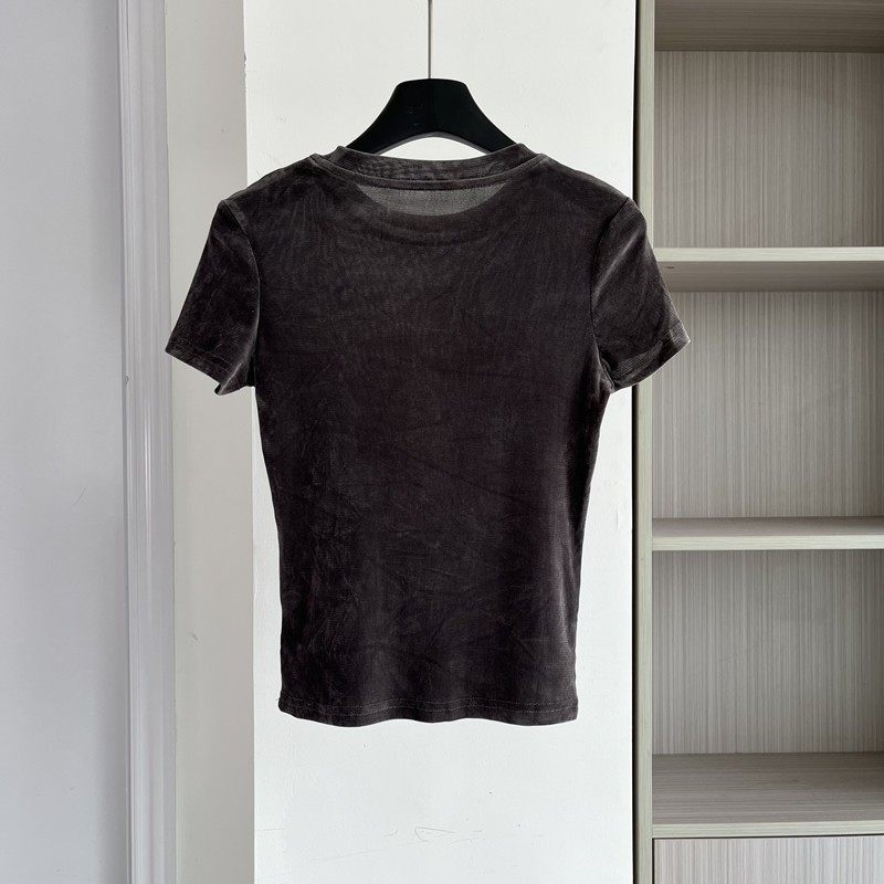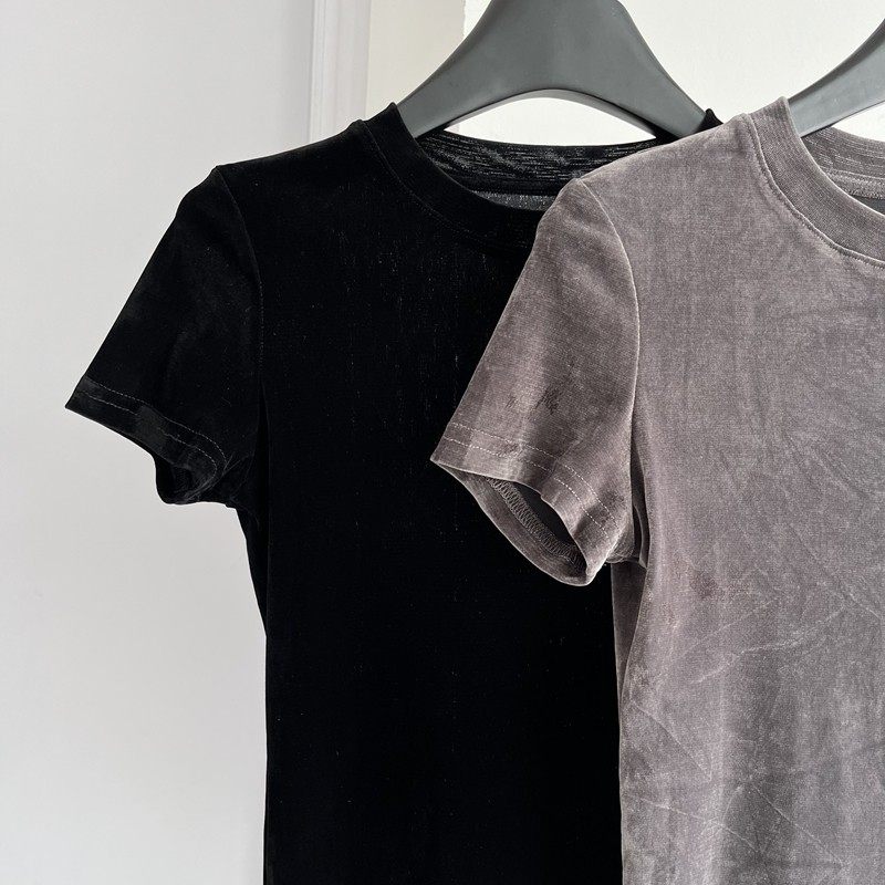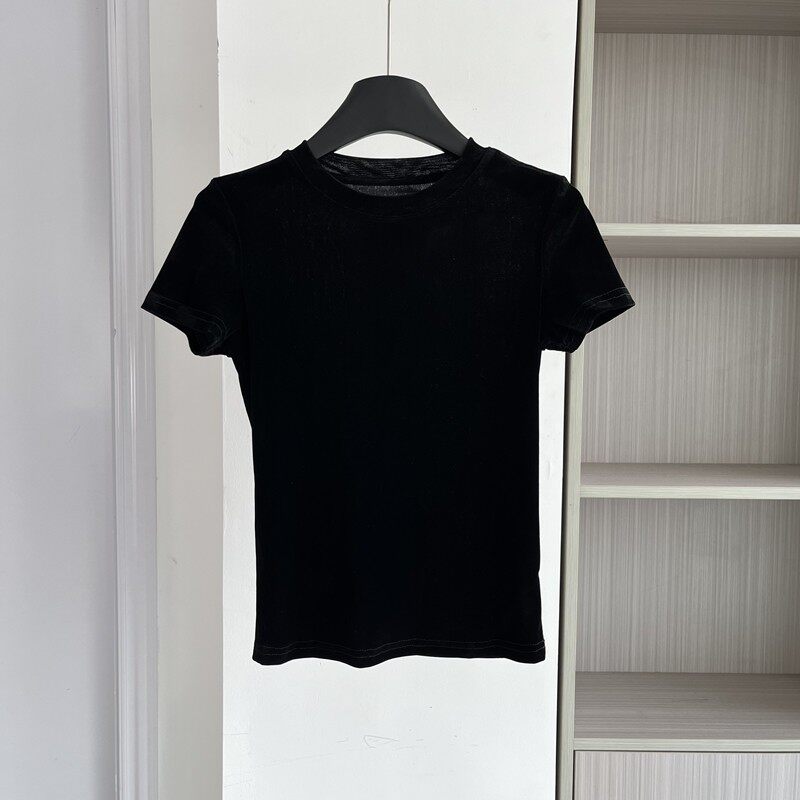 高级感丝绒短袖T恤女显瘦上衣