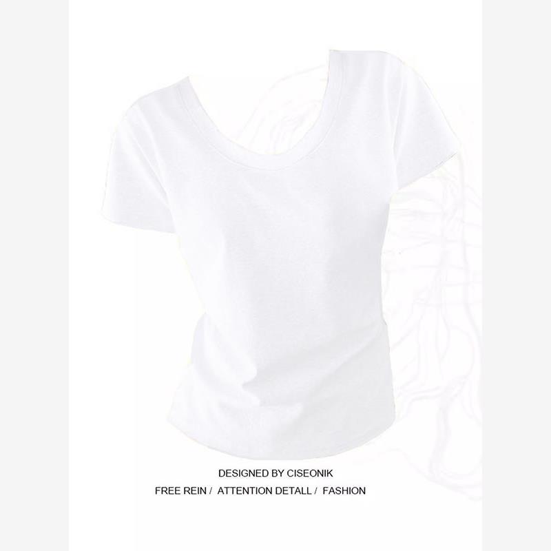 基础款U领正肩短袖T恤女2025夏季新款显瘦休闲上衣简约学生百搭潮