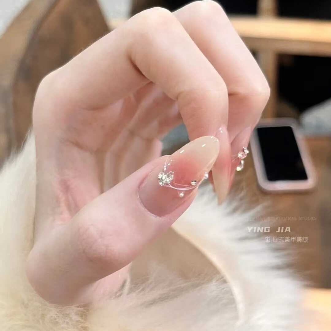 41手工穿戴甲腮红水蜜桃晕染裸色显白钻高级孕妇新娘成品美甲贴片
