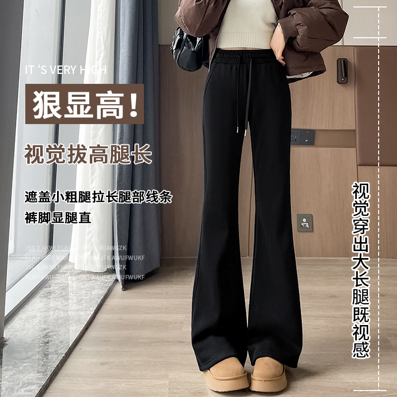 微喇叭裤女2025新款秋冬款加绒裤子高腰显瘦小个子卫裤休闲运动裤