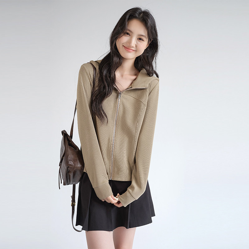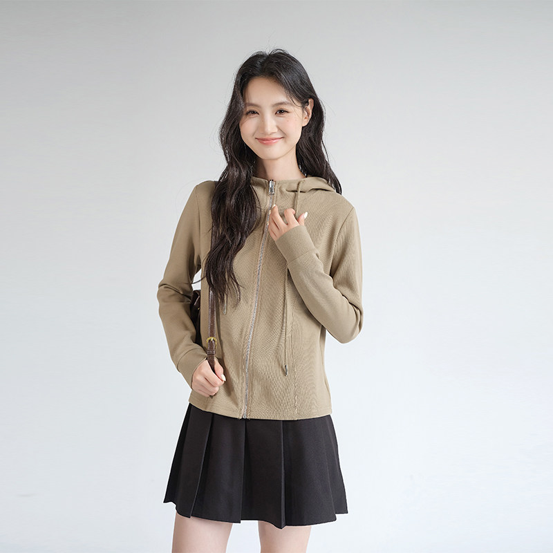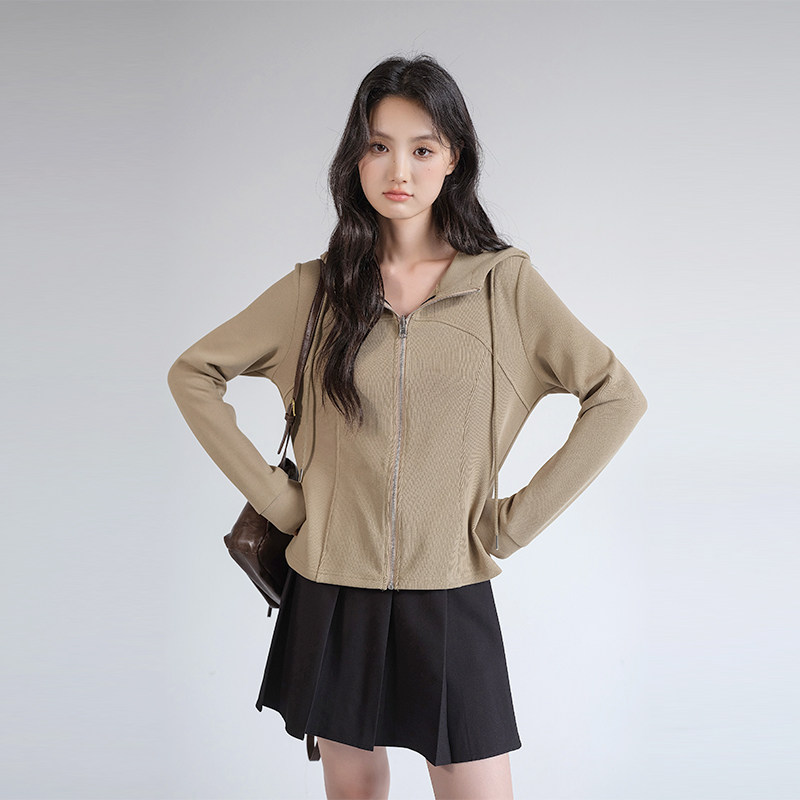 蓝若水大码女装设计感连帽拉链卫衣外套胖mm春装新款休闲遮肚上衣