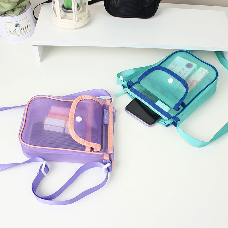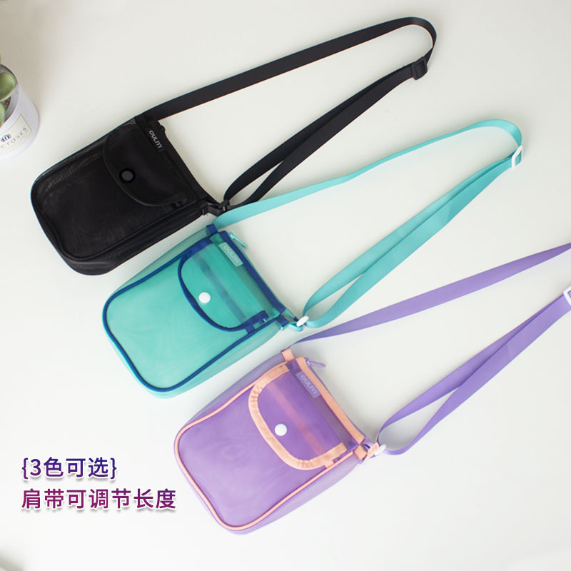 欧力益手机包斜挎女迷你小包单肩透明网纱轻便夏季便携竖款户外袋