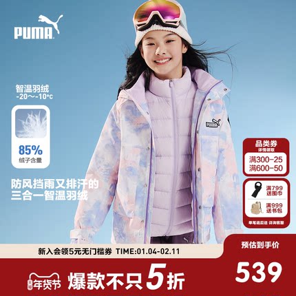 PUMA彪马童装新款儿童羽绒服男童女童两件套防风防泼水多功能外套