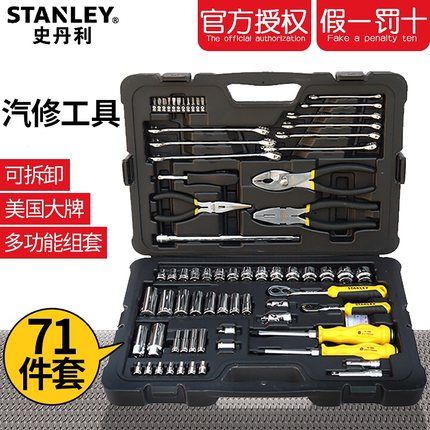 stanley史丹利71件多功能套装 汽修套筒扳手套装快速棘轮修车工具