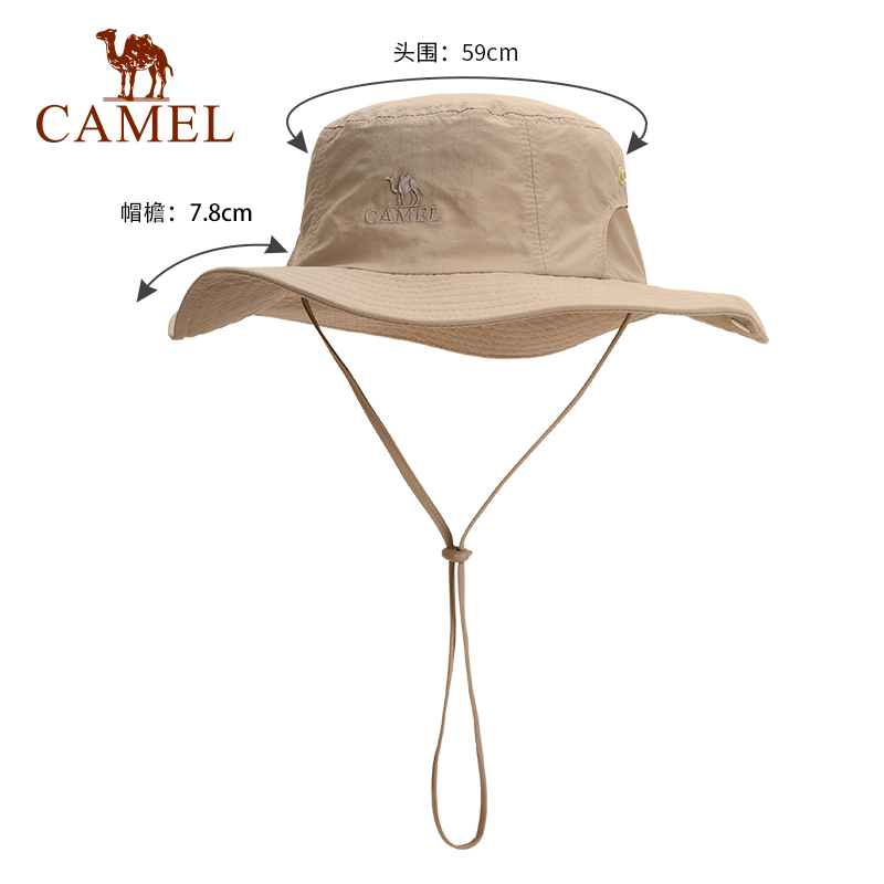 骆驼渔夫帽男女大头围户外徒步防风绳太阳防晒帽夏季海边遮阳帽子