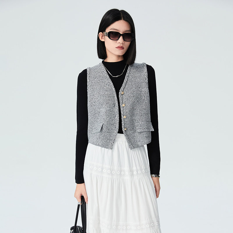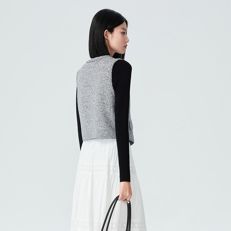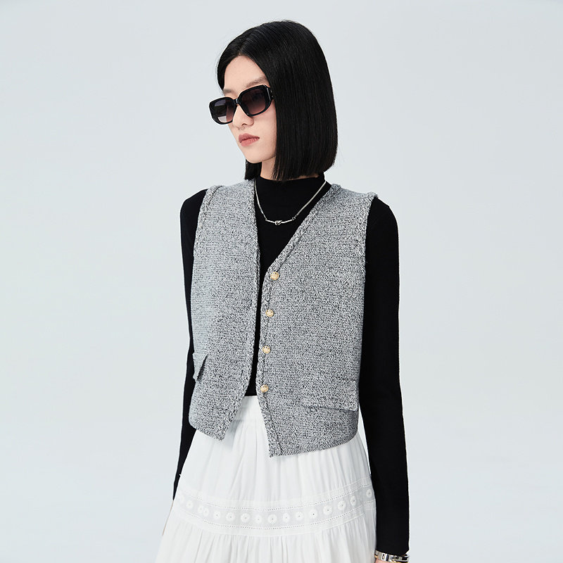 普普风商场同款通勤单排扣百搭气质时尚背心小香风针织马甲23136