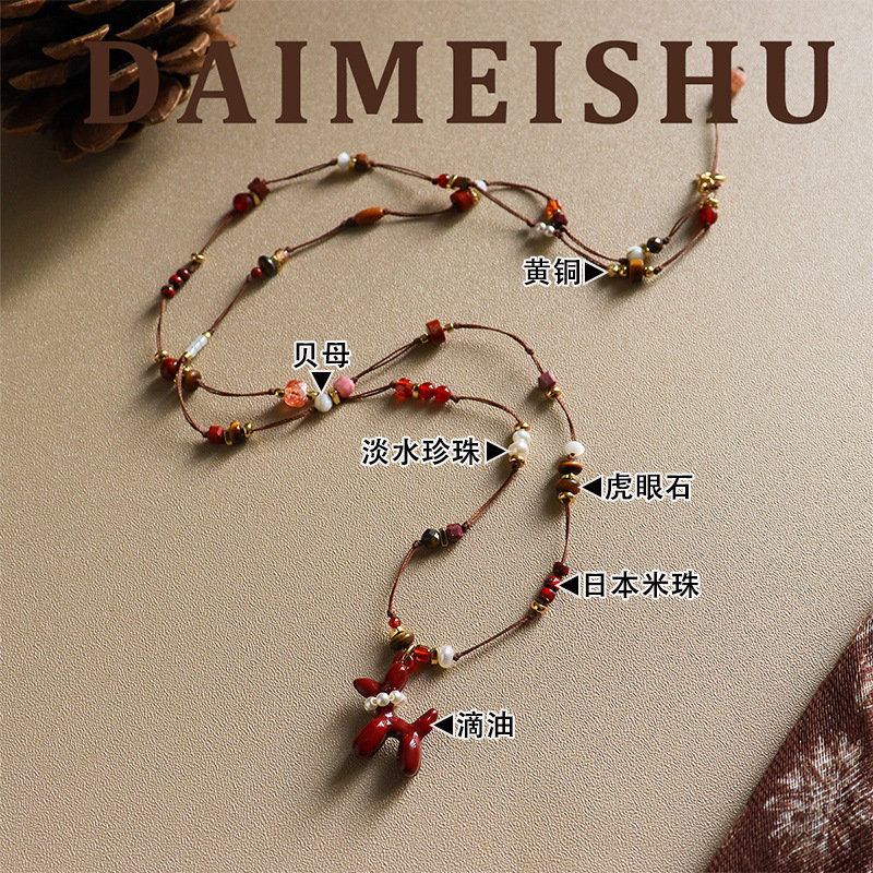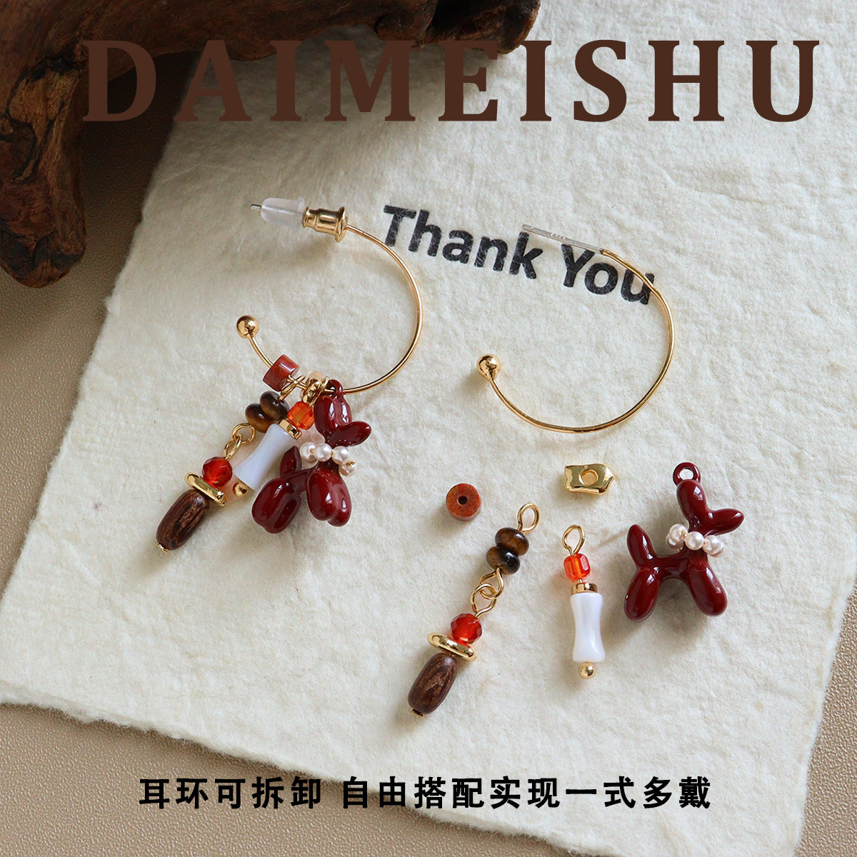 原创设计精致滴油小狗天然石淡水珍珠毛衣链耳环轻奢高级感长项链