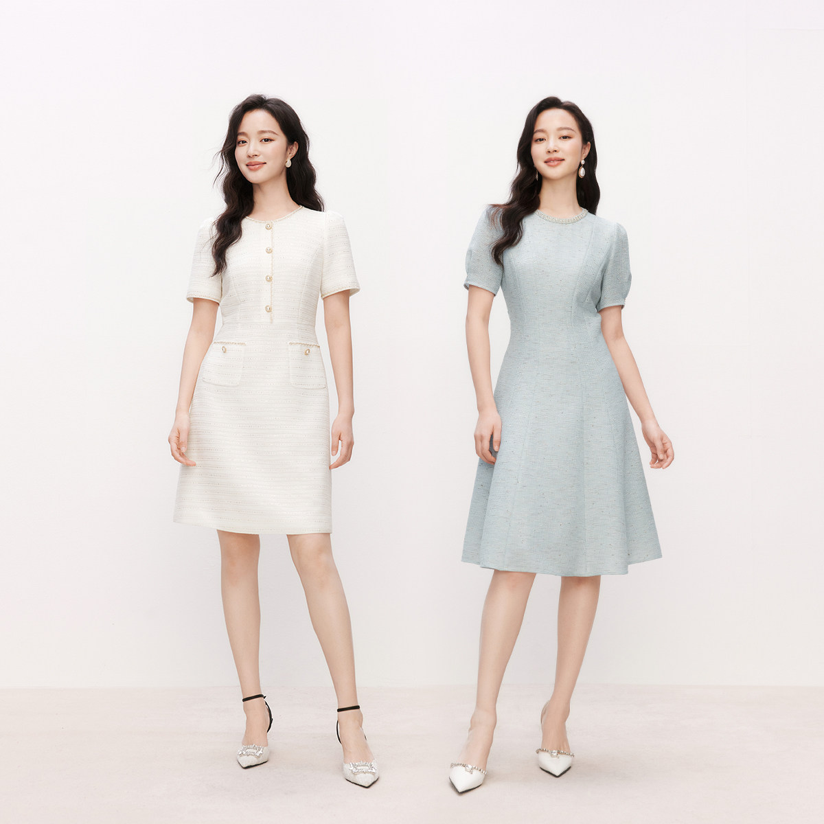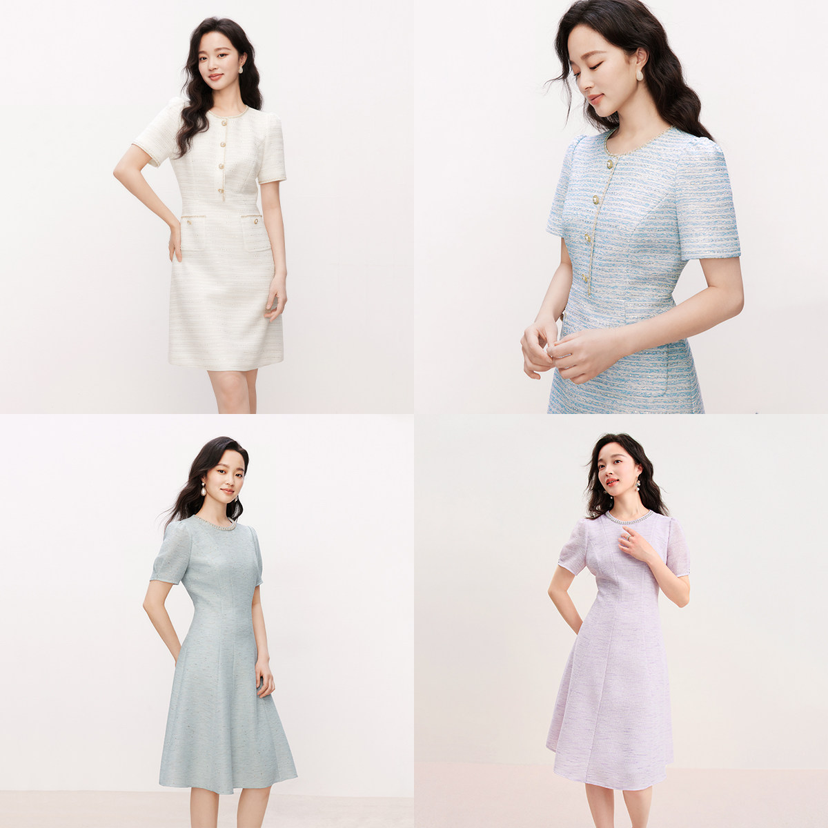 【明星同款】珂莱蒂尔2025新款简约短袖连衣裙优雅气质收腰A字裙
