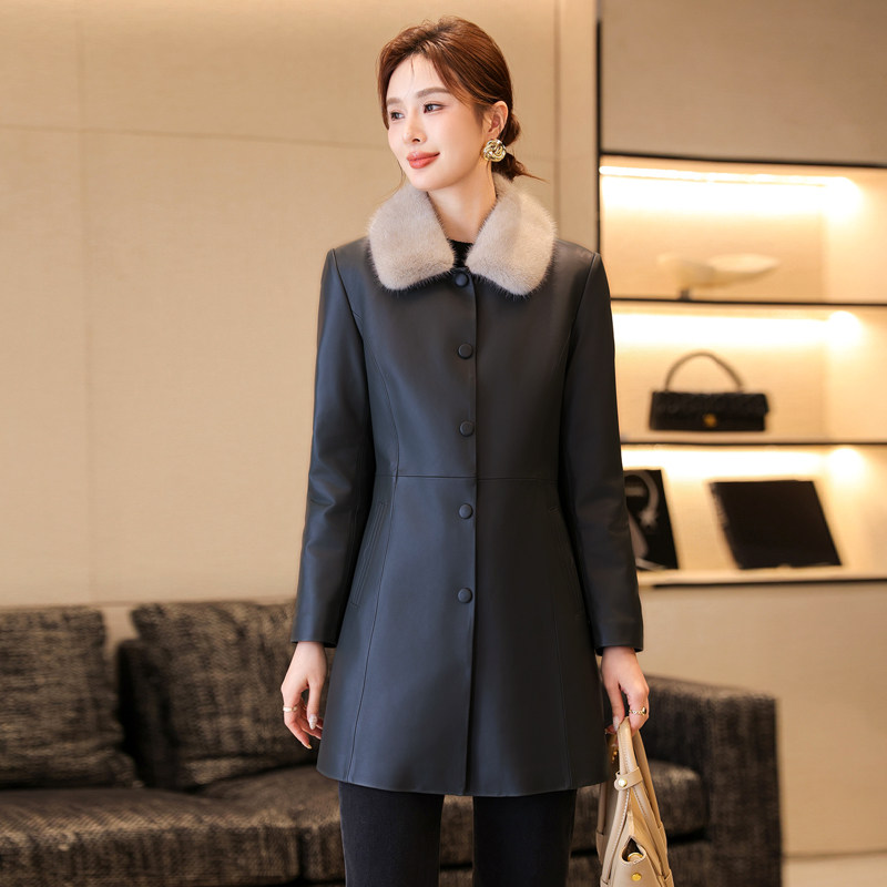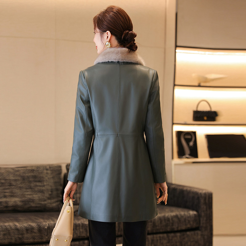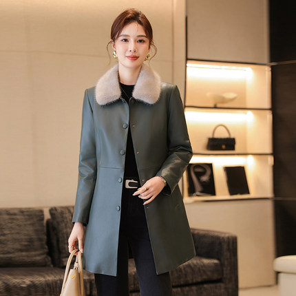 真皮羽绒服女冬季新水貂毛领可内胆拆卸修身海宁绵羊皮外套中长款