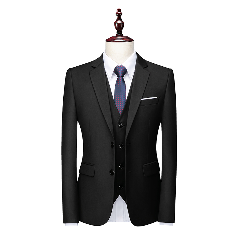 新款西装套装修身韩版男士商务休闲结婚西服三件套黑色马甲西装裤