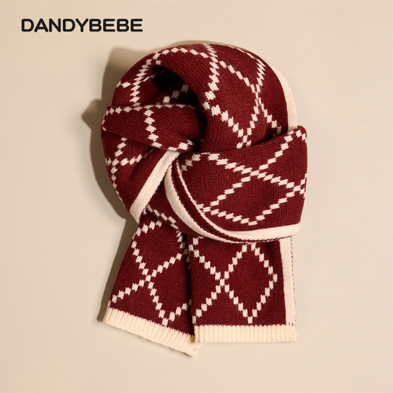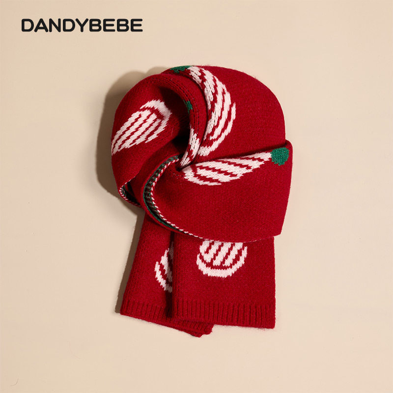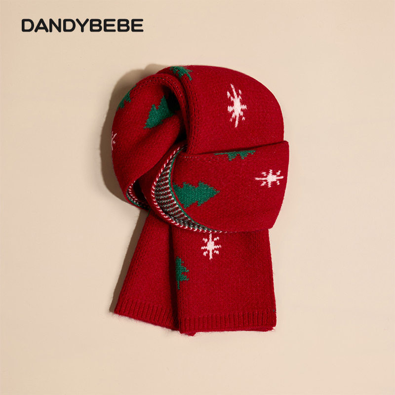 儿童红色围巾男孩女童秋冬季过新年加厚保暖针织毛线宝宝围脖护颈