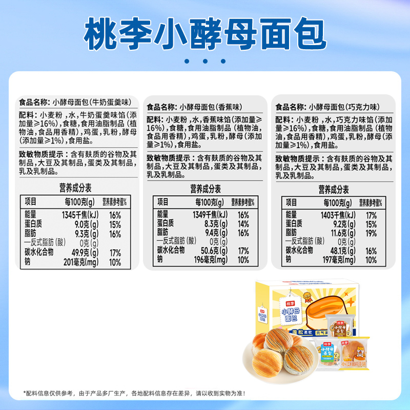 【包邮】桃李酵母小面包多口味装825g/箱早餐蛋糕零食下午茶食品
