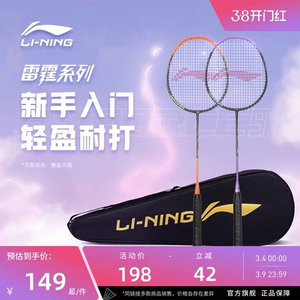 李宁羽毛球拍 雷霆8/9 锋影 正品官方铝铁碳纤维成人入门双拍套装