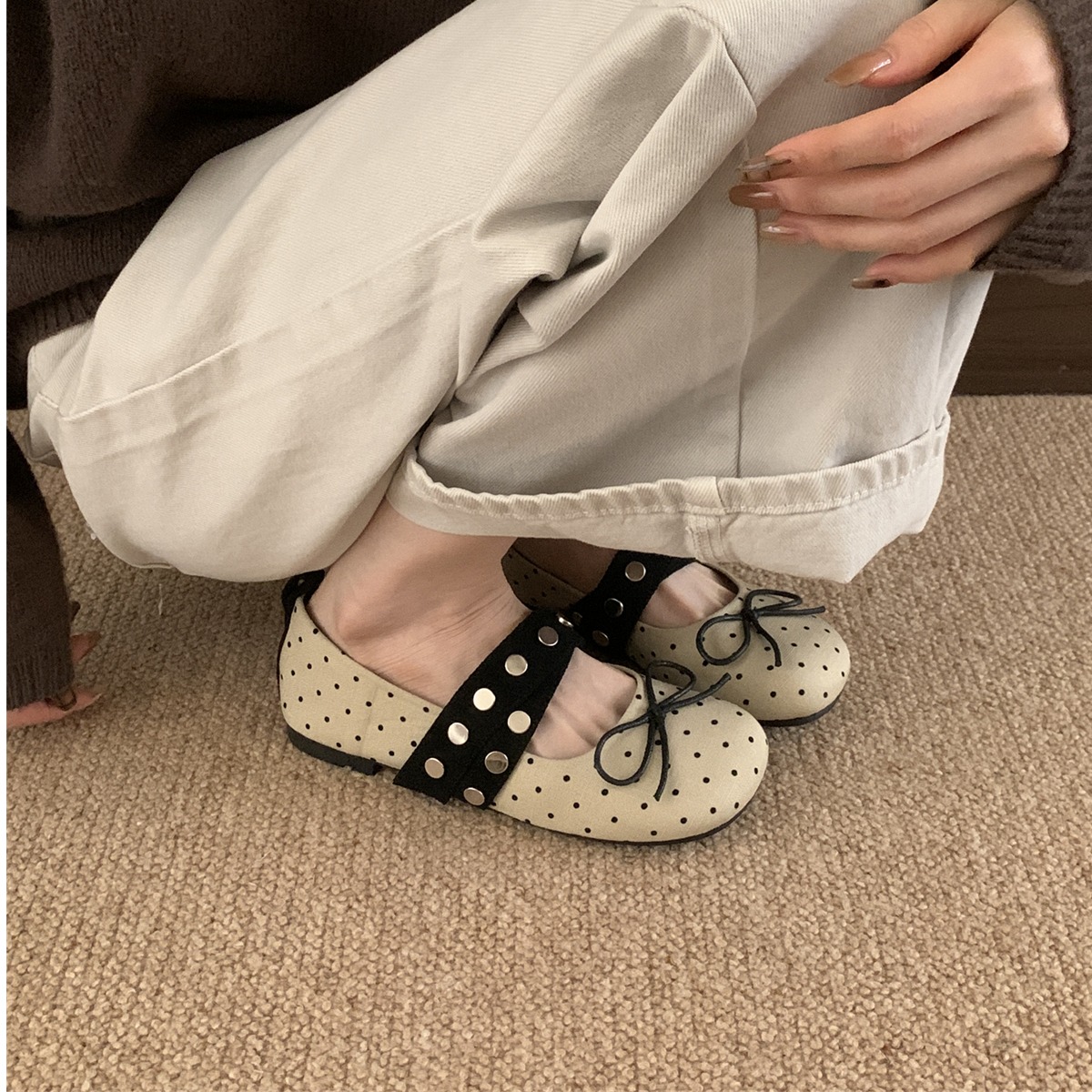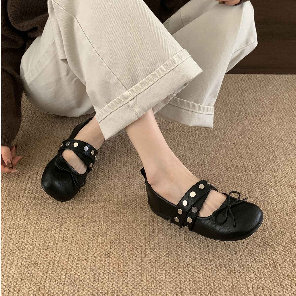 平底复古蝴蝶结圆头晚晚单鞋2025年秋季新款铆钉芭蕾仙女玛丽珍鞋