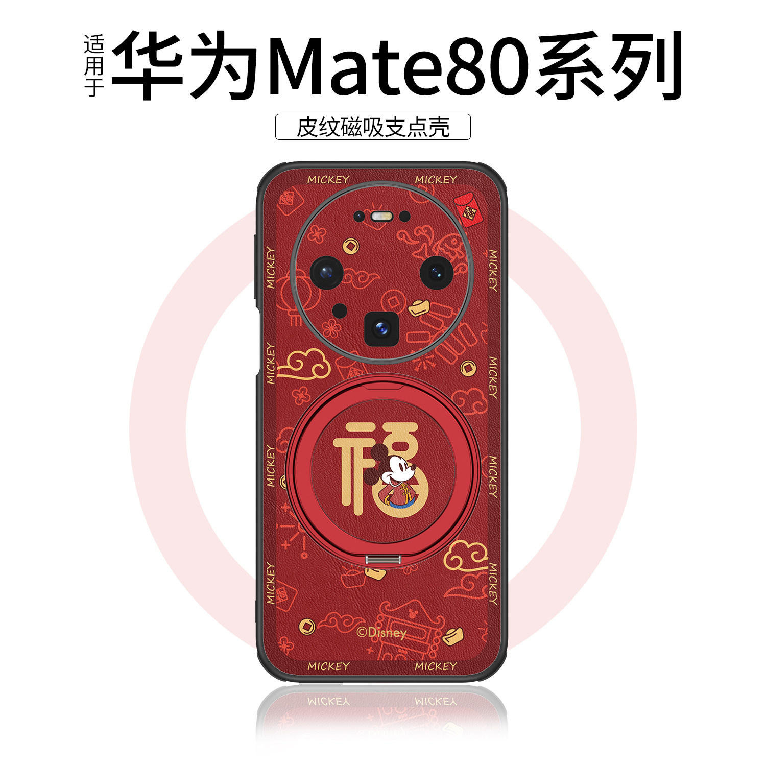 迪士尼正版适用华为Mate80手机壳Mate80promax磁吸带支架70pro+高档皮纹全包防摔外壳新年红色米奇马年保护套
