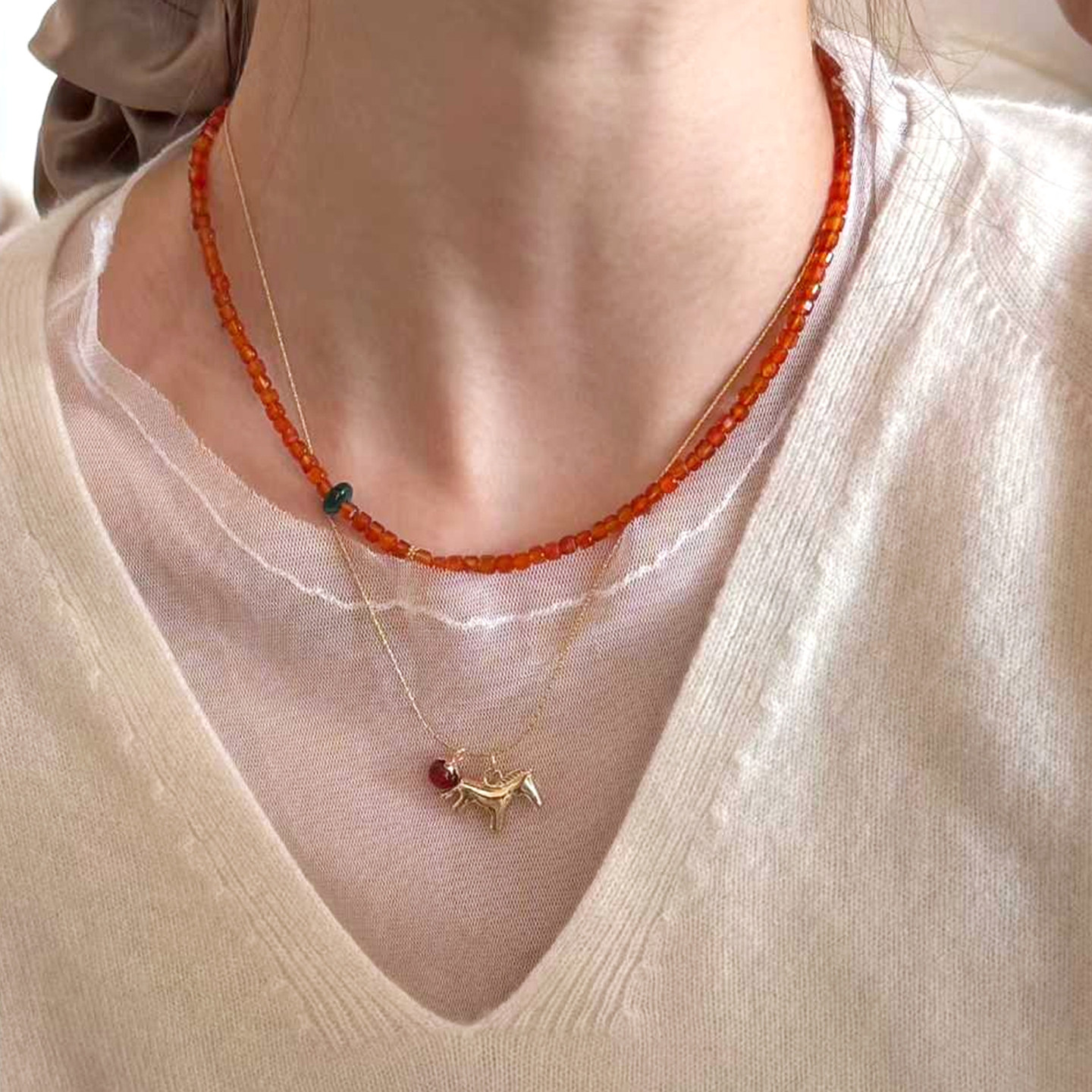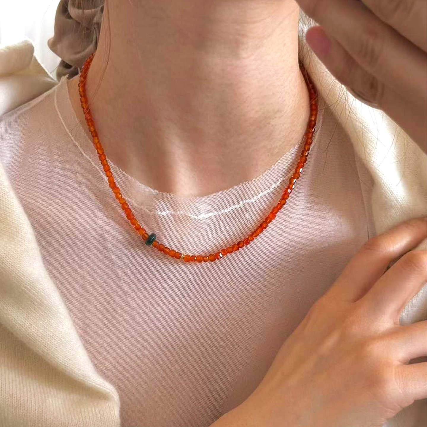 天然红玛瑙项链高级感轻奢小众925纯银翡翠串珠锁骨链红色手链女