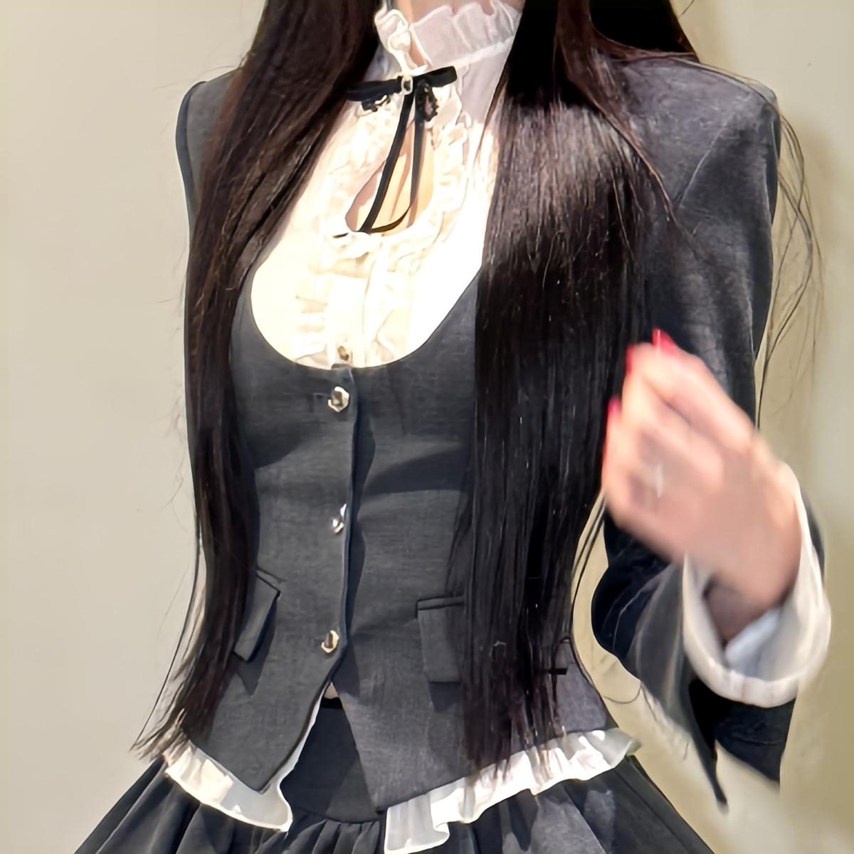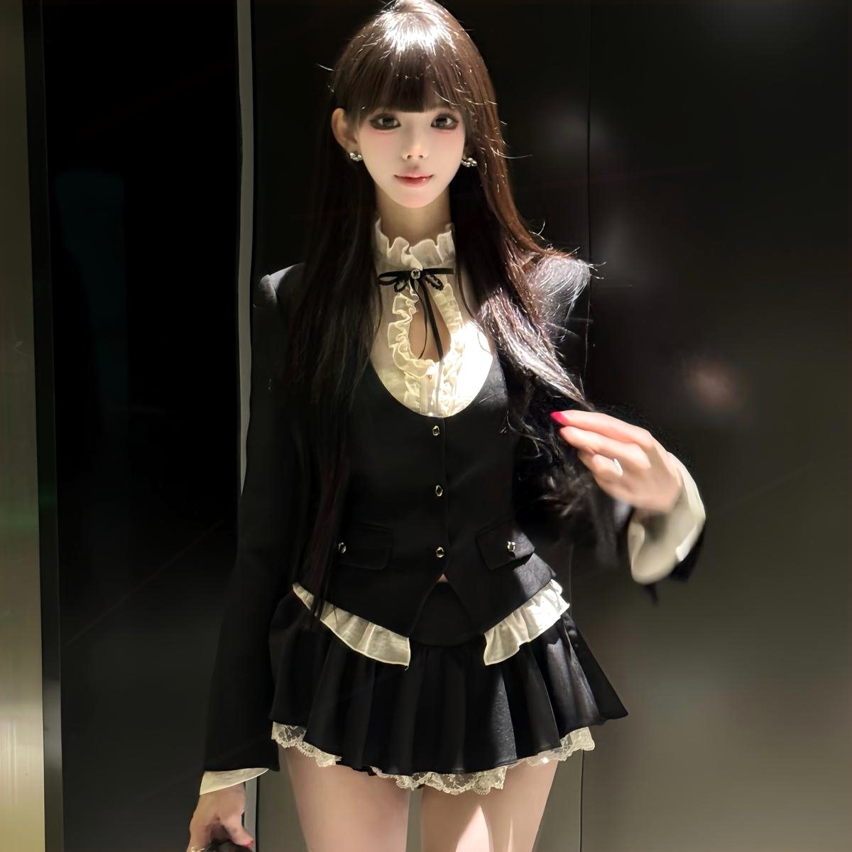 长袖短裙衬衫上衣显瘦性感时尚套装工作室原创新品YeYe法式
